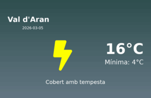 Predicció del Temps a la Val d'Aran per al 5 de Març de 2026 Avui, a la Val d'Aran, preveiem un dia amb condicions meteorològiques...