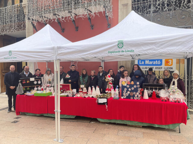 La vicepresidenta de les Escoles Especials Llar de Sant Josep de la Diputació de Lleida, Rosa Pujol, juntament amb altres diputats, ha visitat la Parada de Nadal que s’ha dut a terme els dies 11 i 12 de desembre. Aquesta acció forma part d’una tradició en la qual els alumnes de les Escoles Especials ofereixen productes fets per ells mateixos, especialment relacionats amb les festivitats nadalenques.