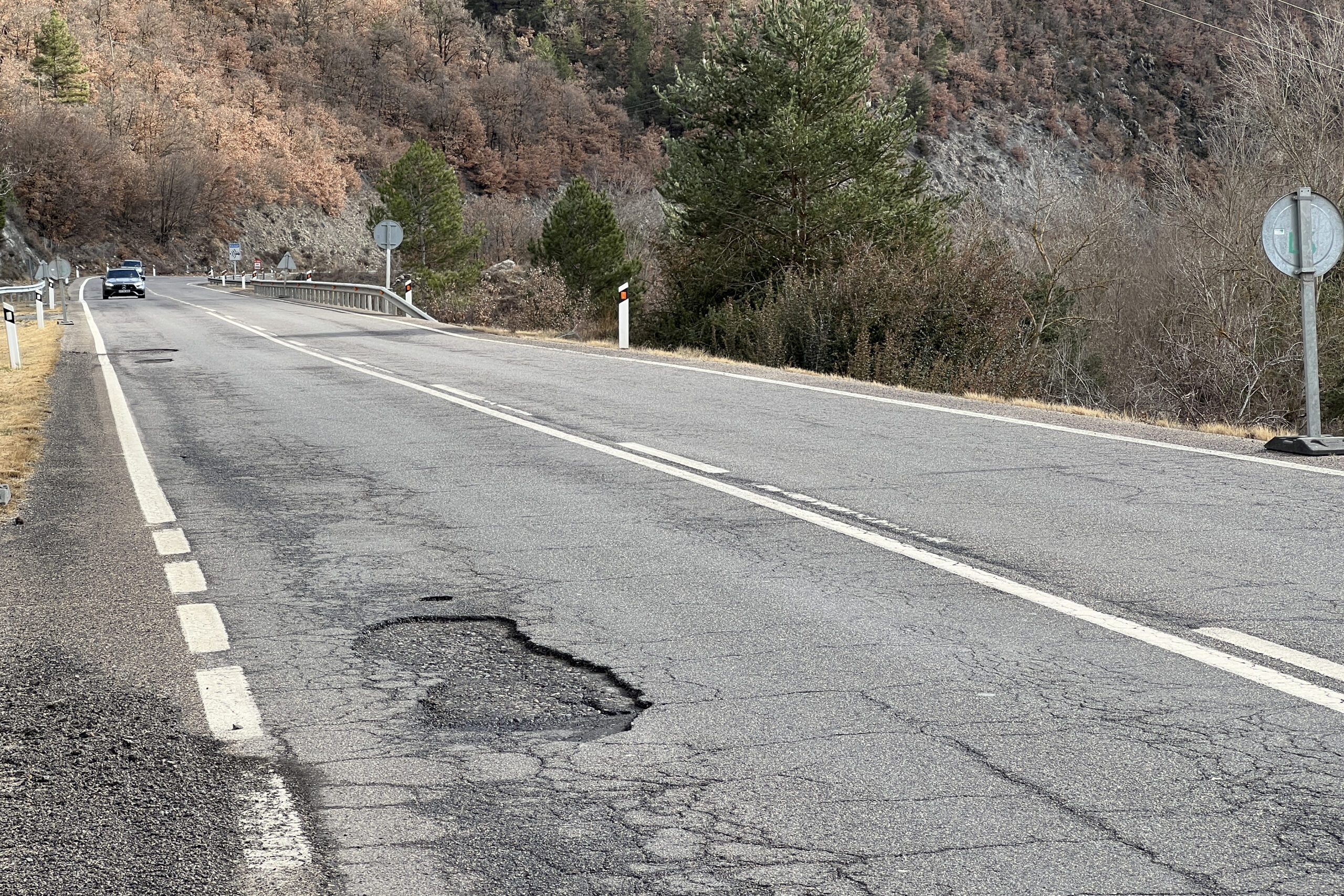 Andorrà apunta que també han rebut queixes del càmping que hi ha al municipi, ja que els sots dificulten la circulació de caravanes en aquest tram. Finalment, diu que el perill s’incrementa entre els conductors que no són de la zona i no coneixen la situació actual de la carretera en aquest punt, situat al límit entre les comarques de l’Alt Urgell i la Cerdanya.